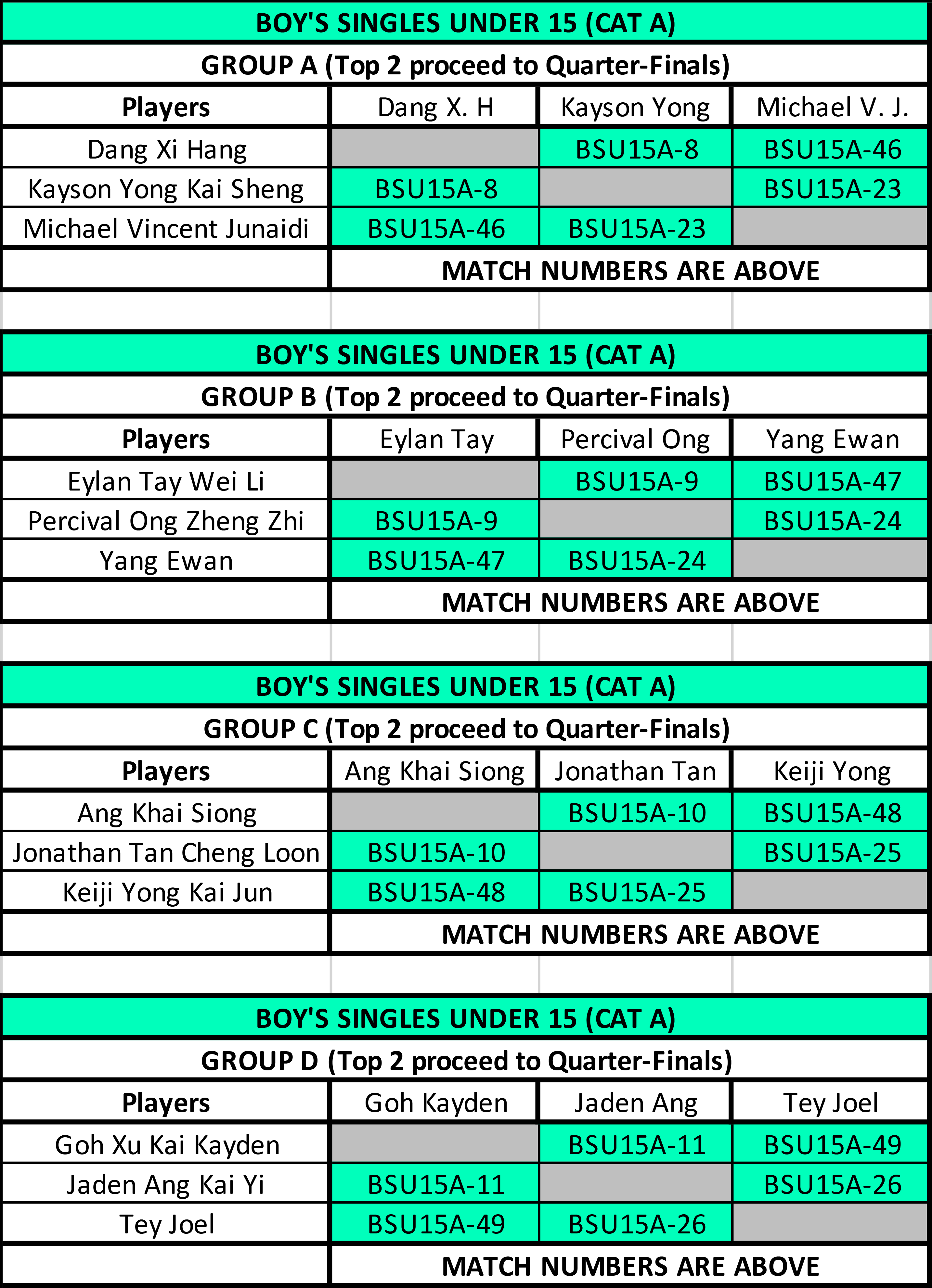 Boy's Singles Under 15 (CAT A)